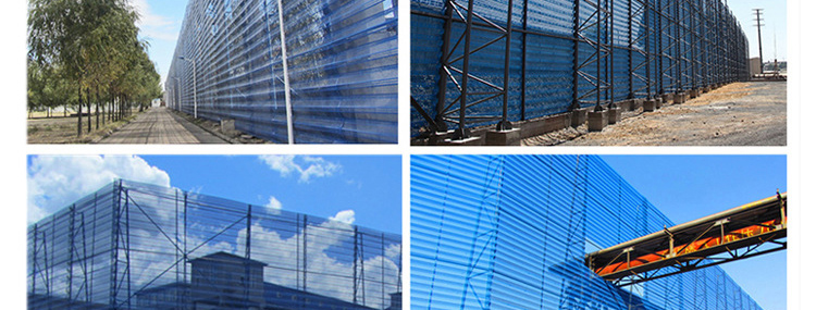 用途:主要用于煤礦、焦化廠、電廠等企業(yè)工廠的儲(chǔ)煤場(chǎng);港口、碼頭儲(chǔ)煤場(chǎng)及各種料場(chǎng);鋼鐵、建材、水泥等企業(yè)各種露天料場(chǎng);農(nóng)作物防風(fēng),沙化天氣防塵等惡劣環(huán)境;鐵路、公路煤炭集運(yùn)站儲(chǔ)煤場(chǎng)、建筑工地、道路揚(yáng)塵、高速公路兩側(cè)等。單層擋風(fēng)抑塵墻抑塵效果可達(dá)65~85%,雙層擋風(fēng)抑塵墻效果可達(dá)95%以上;擋風(fēng)抑塵墻不僅外形美觀,維護(hù)成本低并且具備防火,防盜等優(yōu)點(diǎn);完全避免了以往表面覆蓋、噴淋技術(shù)、全封閉幾種措施反復(fù)投資、耗資巨大、受場(chǎng)地和作業(yè)要求限制、抑塵效果不佳的問(wèn)題。