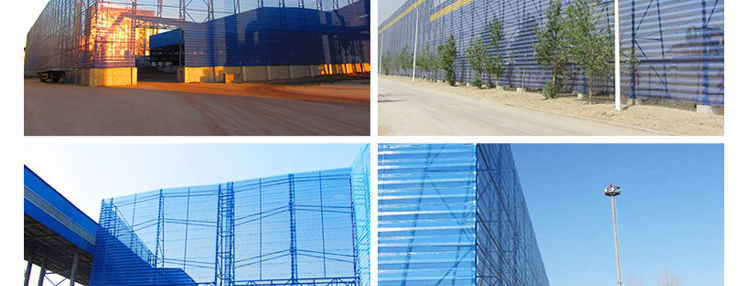 雙峰防風(fēng)抑塵網(wǎng)是利用空氣動力學(xué)原理,按照實施現(xiàn)場環(huán)境風(fēng)洞實驗結(jié)果加工成一定幾何形狀、開孔率和不同孔形組合擋風(fēng)抑塵墻,使流通的空氣(強風(fēng))從外通過墻體時,在墻體內(nèi)側(cè)形成上、下干擾的氣流以達(dá)到外側(cè)強風(fēng),內(nèi)側(cè)弱風(fēng),外側(cè)小風(fēng),內(nèi)側(cè)無風(fēng)的效果,從而防止粉塵的飛揚。